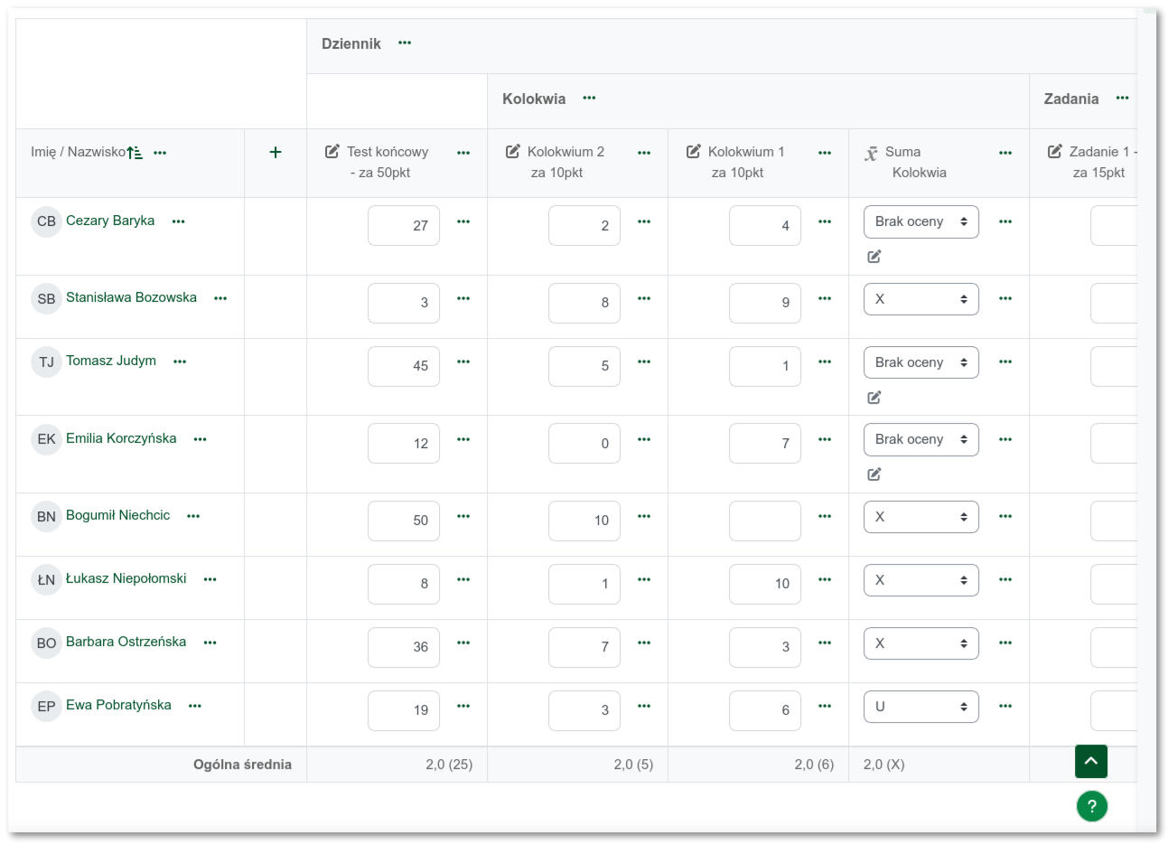 Wstawianie i edycja ocen jest możliwa tylko po włączeniu trybu edycji. W widoku dziennika ocen lub w widoku pojedynczej oceny, gdy włączony jest tryb edycji, oceny wyświetlane są w tekstowych polach edycji. Po zakończeniu edycji należy zapisać wprowadzone zmiany.